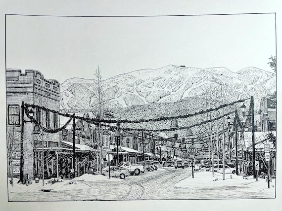 Print Drawing Of Whitefish Montana Ski Resort Big Sky Etsy