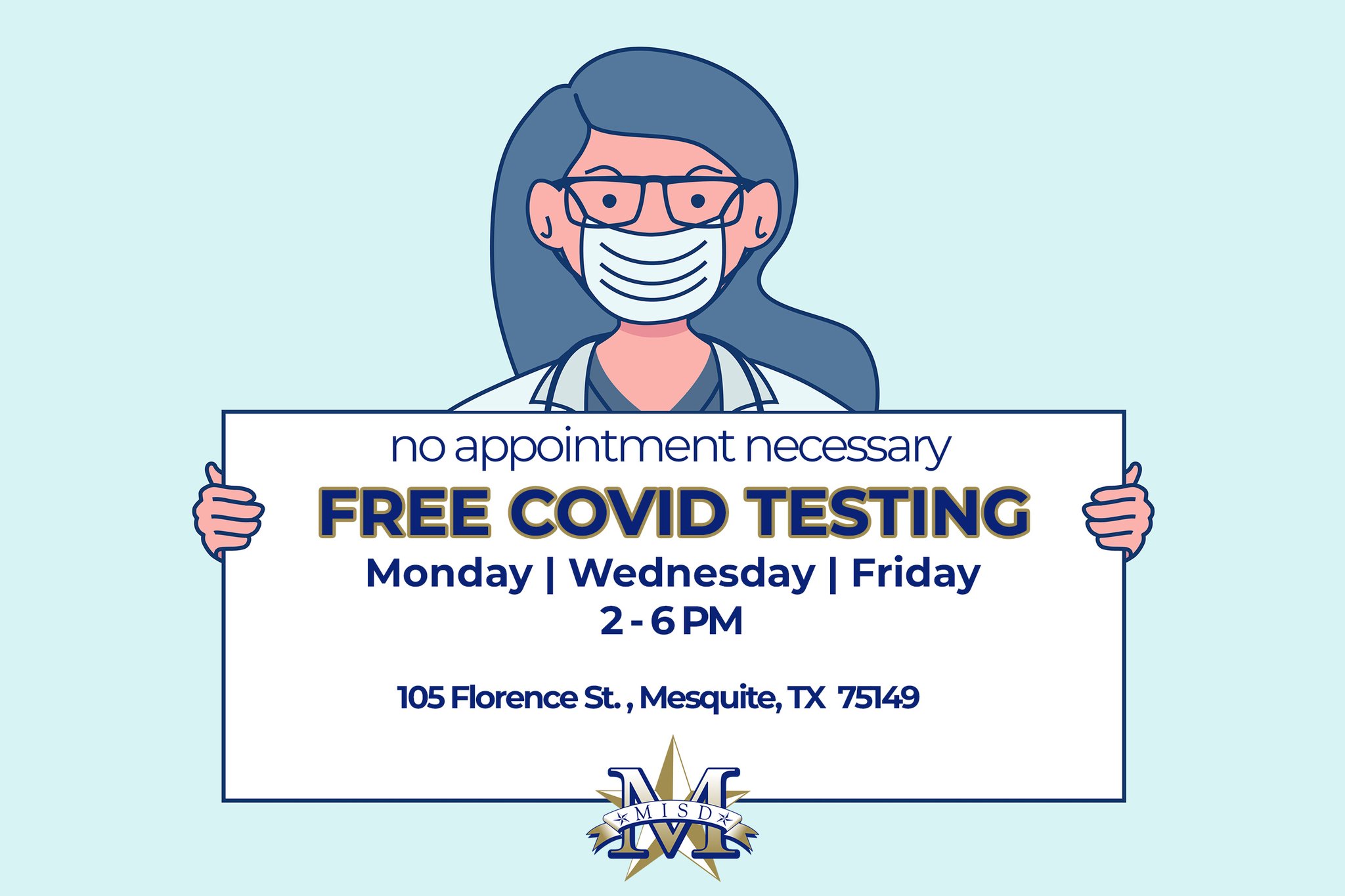Mesquite Isd On Twitter Mesquite Isd Health Services Is Providing Free Covid Testing Every Monday Wednesday And Friday From 2 6 Pm At 105 Florence St Mesquite Tx 75149 No Appointment Necessary Students Staff And Community Members